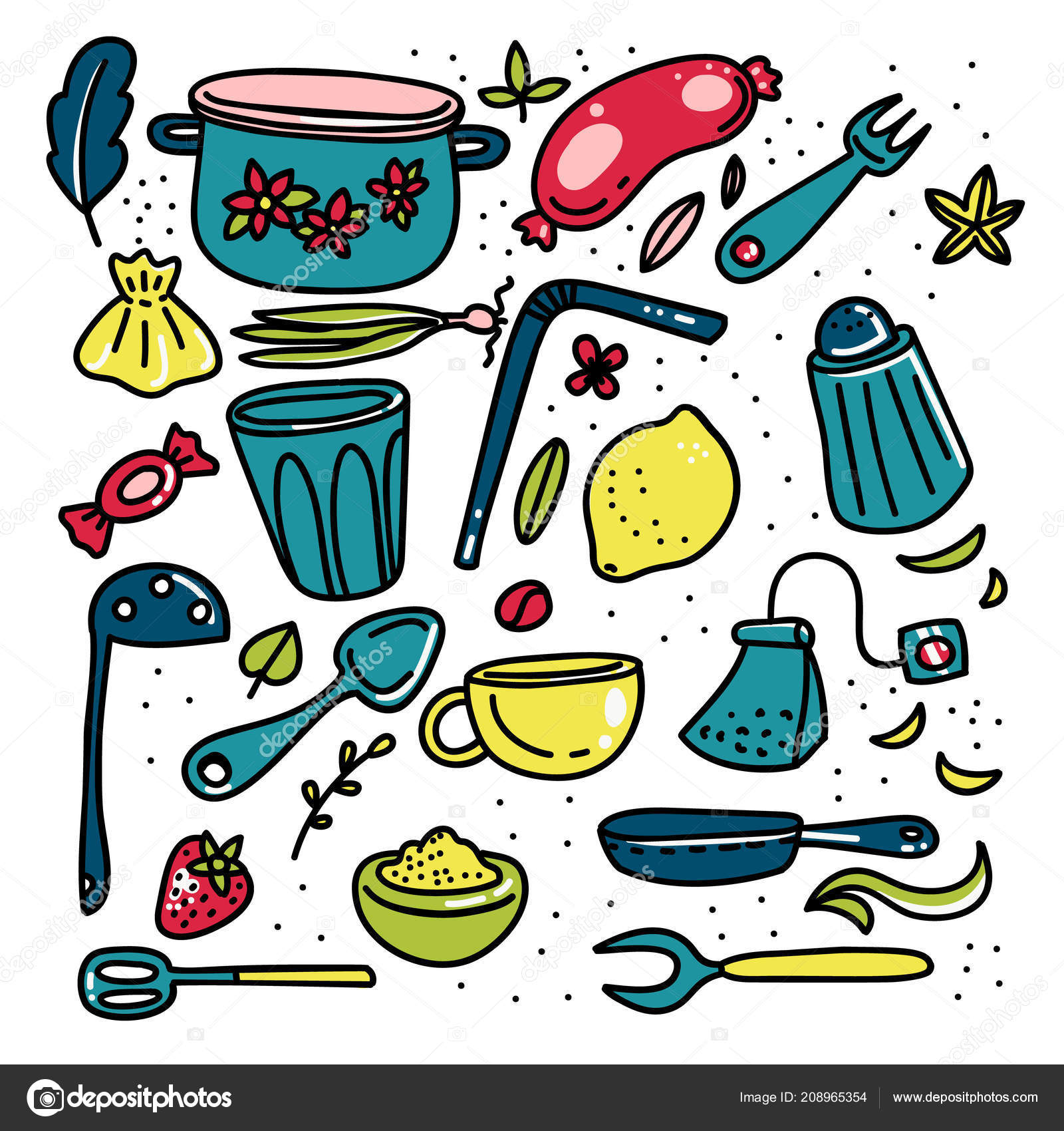 Doodle Elements Grand Set De Cuisine Dessin Anime Image